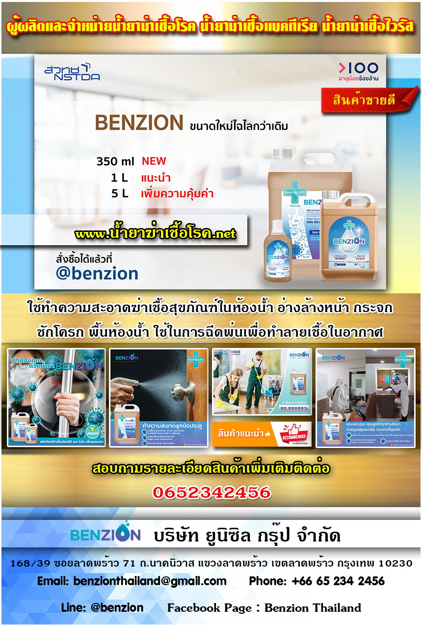 น้ำยาฆ่าเชื้อ Benzion สารฆ่าเชื้อไวรัสและแบคทีเรียจากซิงค์ไอออน